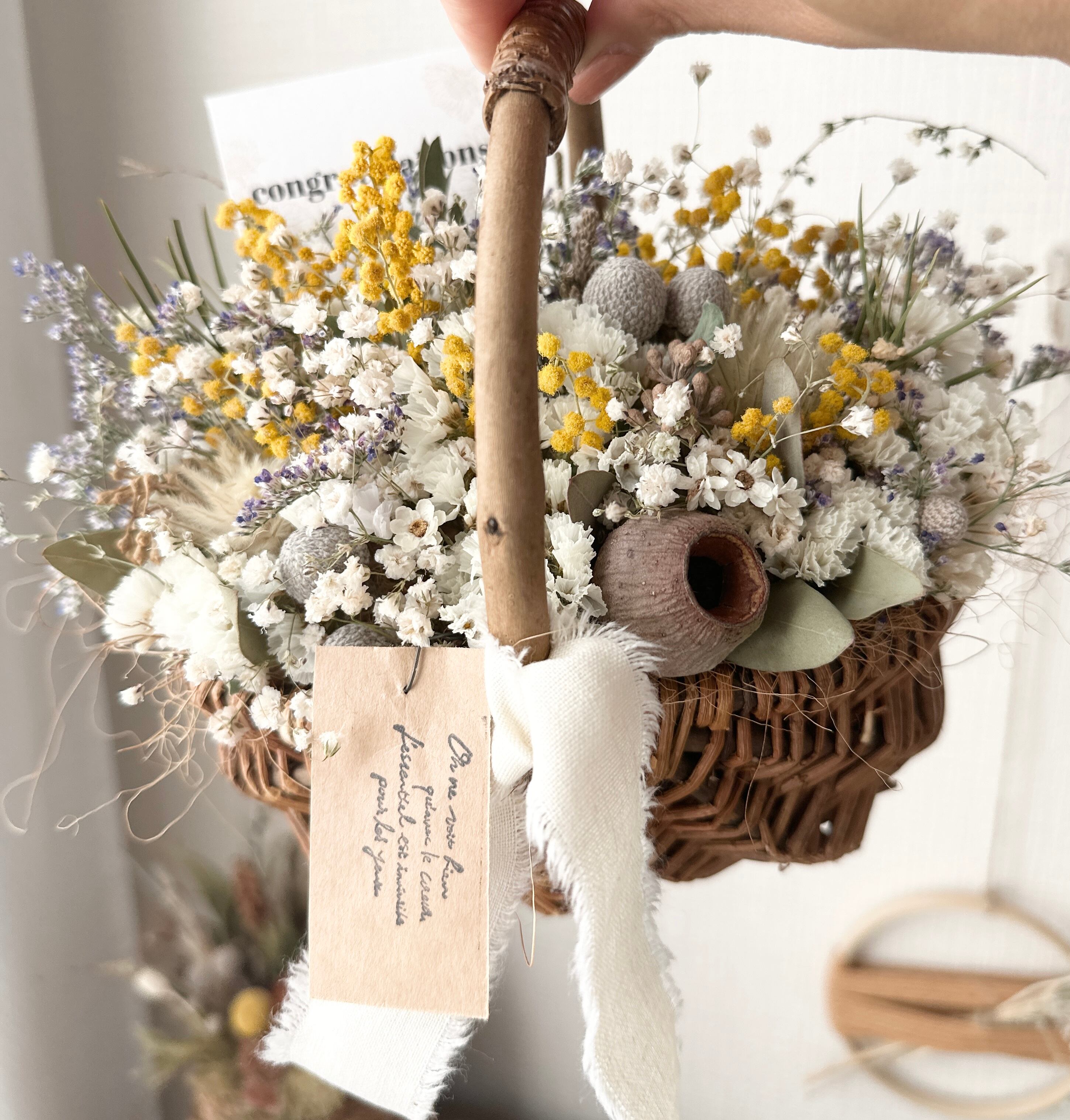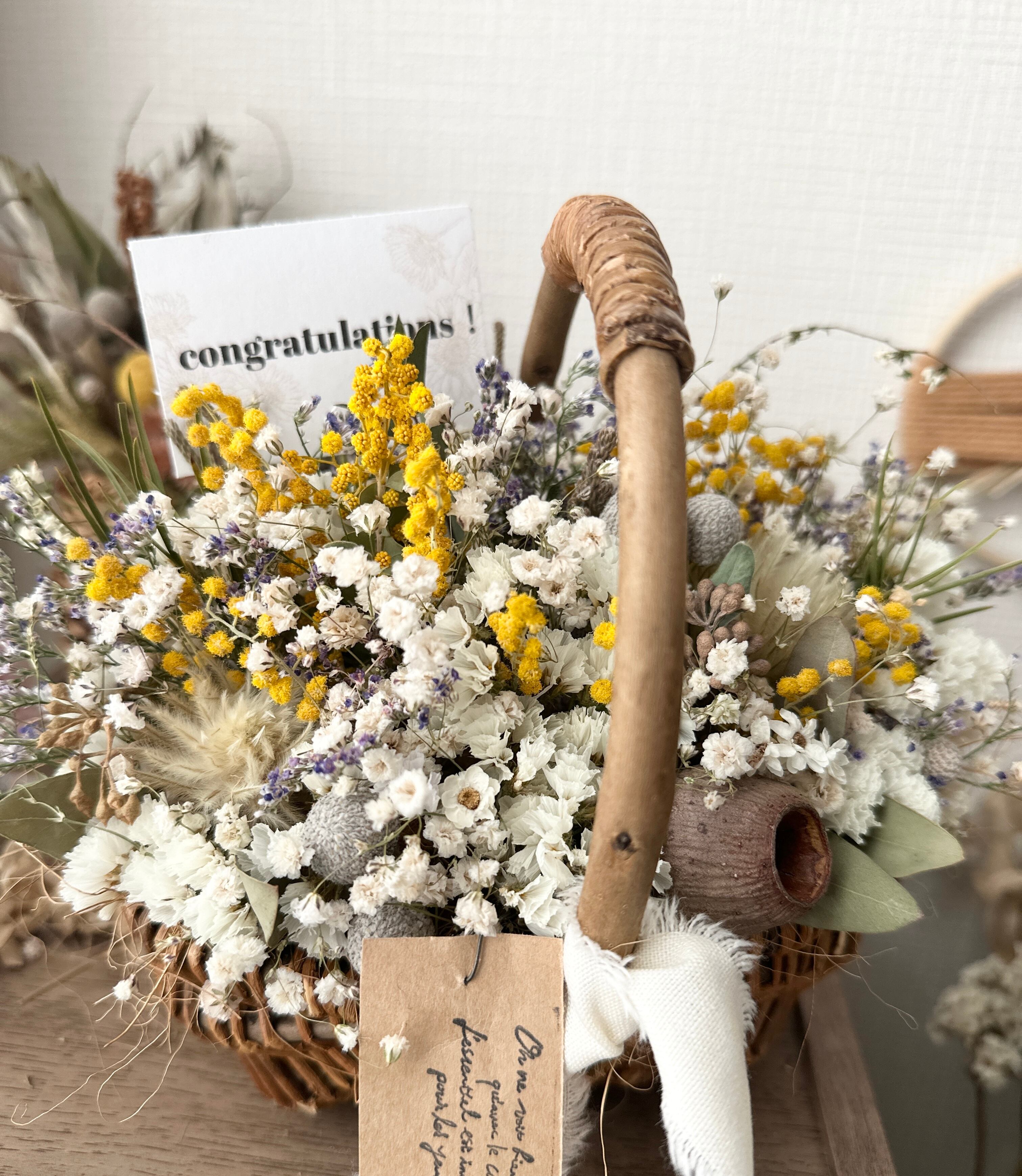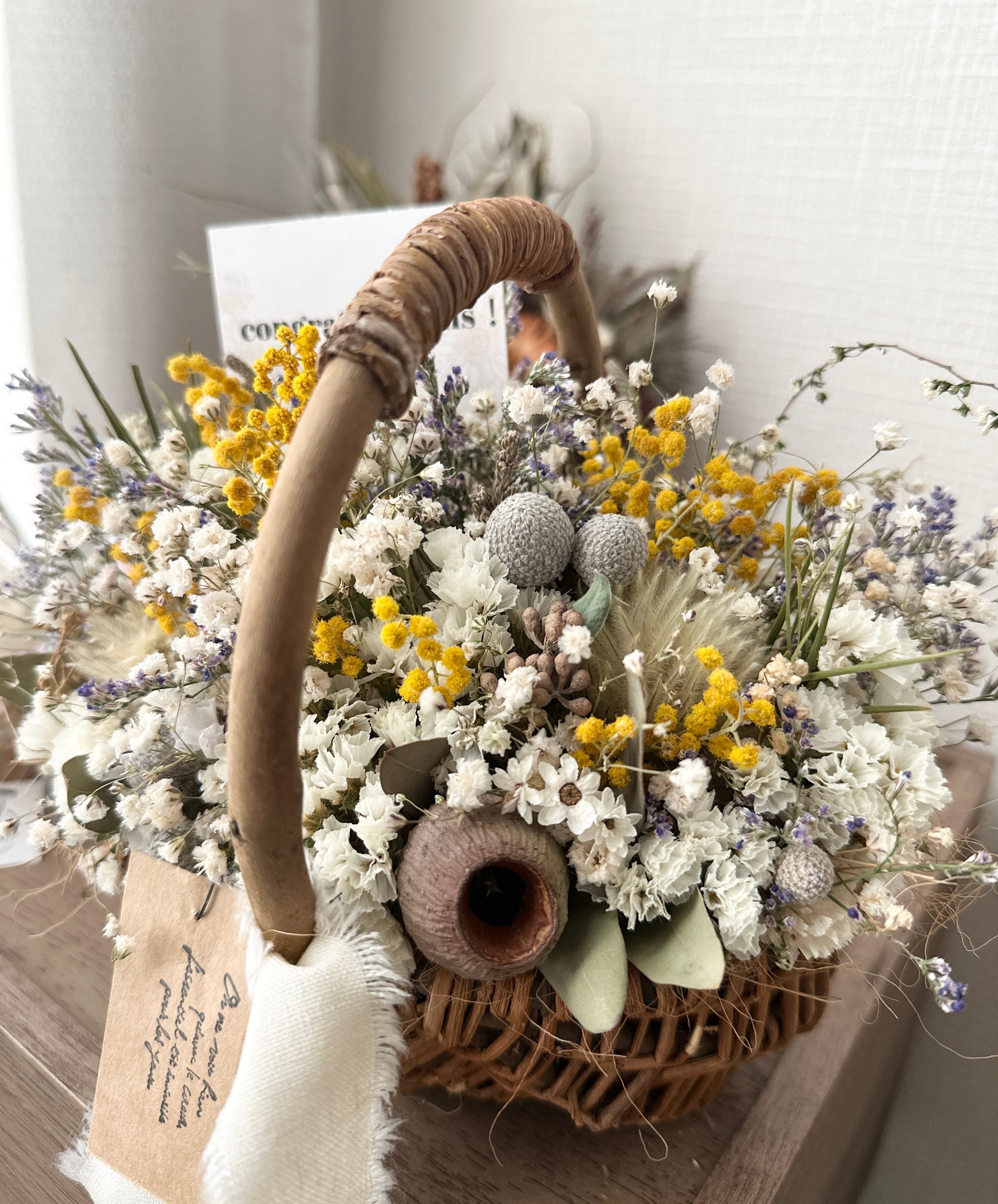 #ミモザ #ユーカリ #インテリア #バスケットアレンジ #プレゼント #お祝いの品 #ドライフラワーインテリア #フォトアイテム #バースデープレゼント #母の日2025 #母の日ギフト #節句祝い #開店祝い