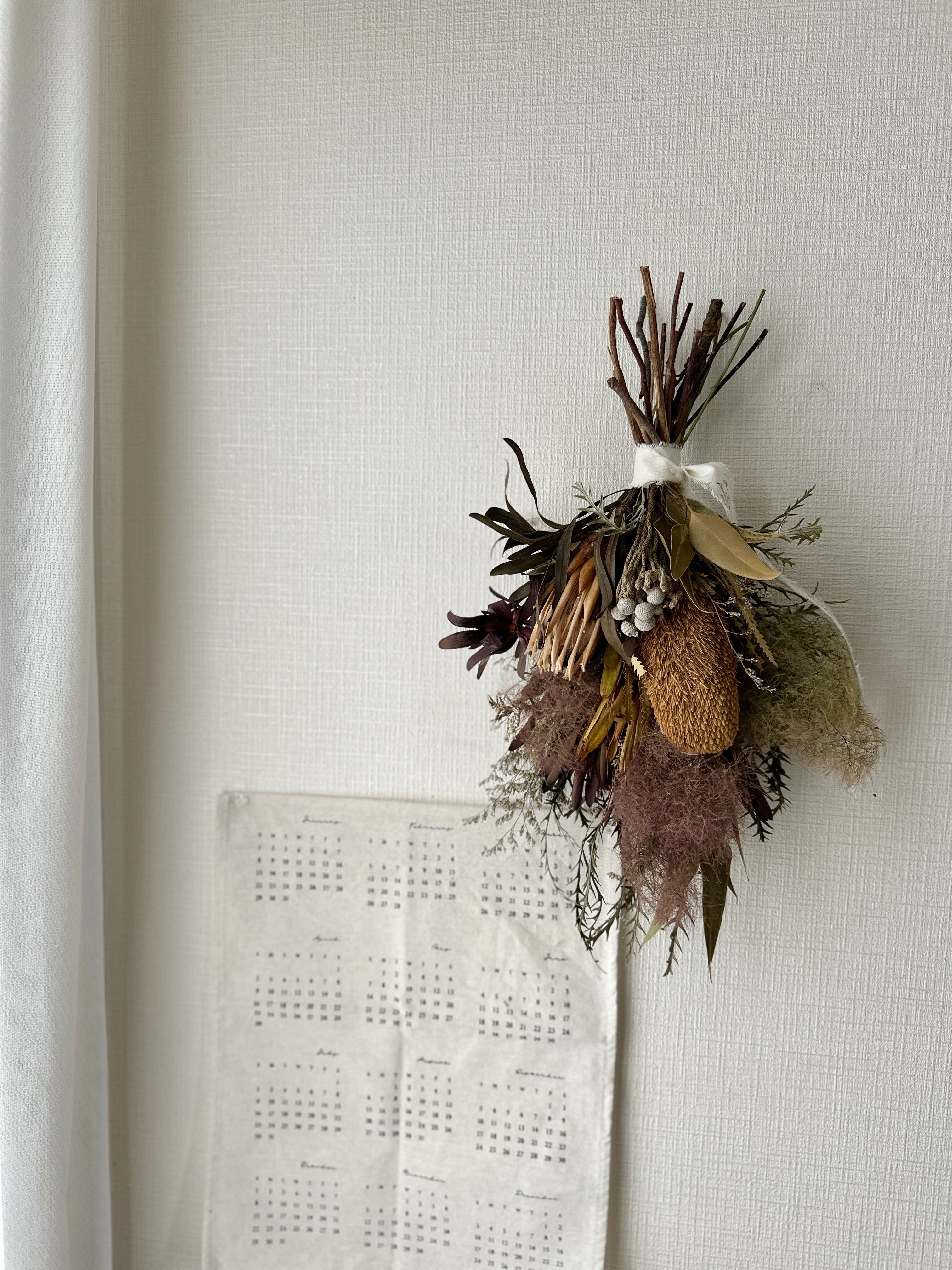 #スワッグ #スモークツリー #バンクシア #プロテア #アンティークインテリア #リビングインテリア #店舗装花 #開店祝い #新築祝い