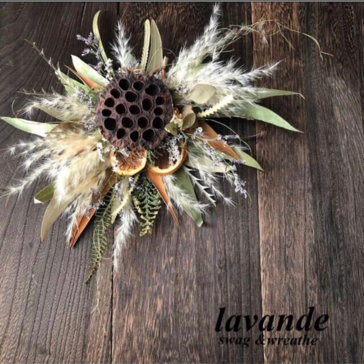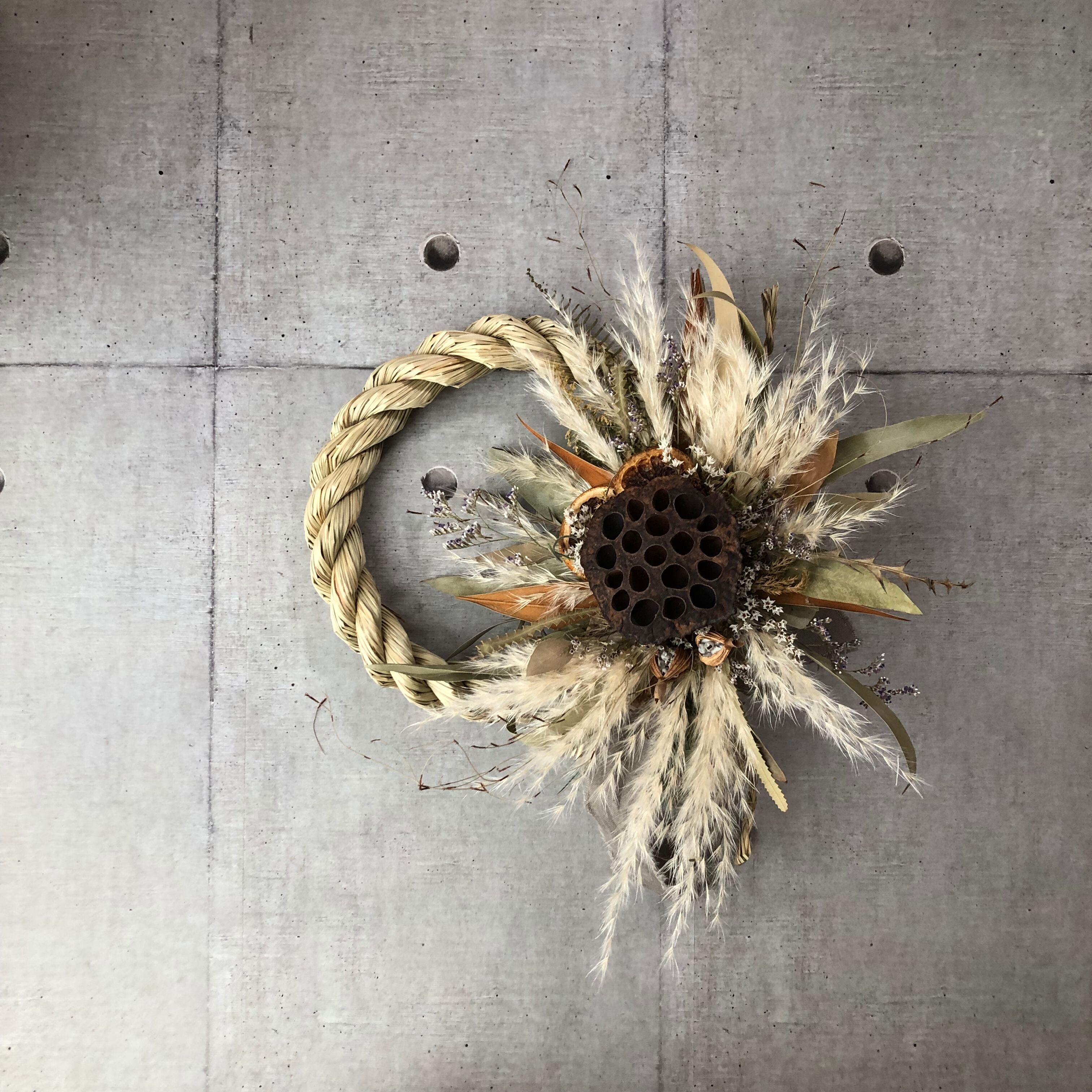 ハイブリッドスターチスなどを使用したしめ縄飾りです。