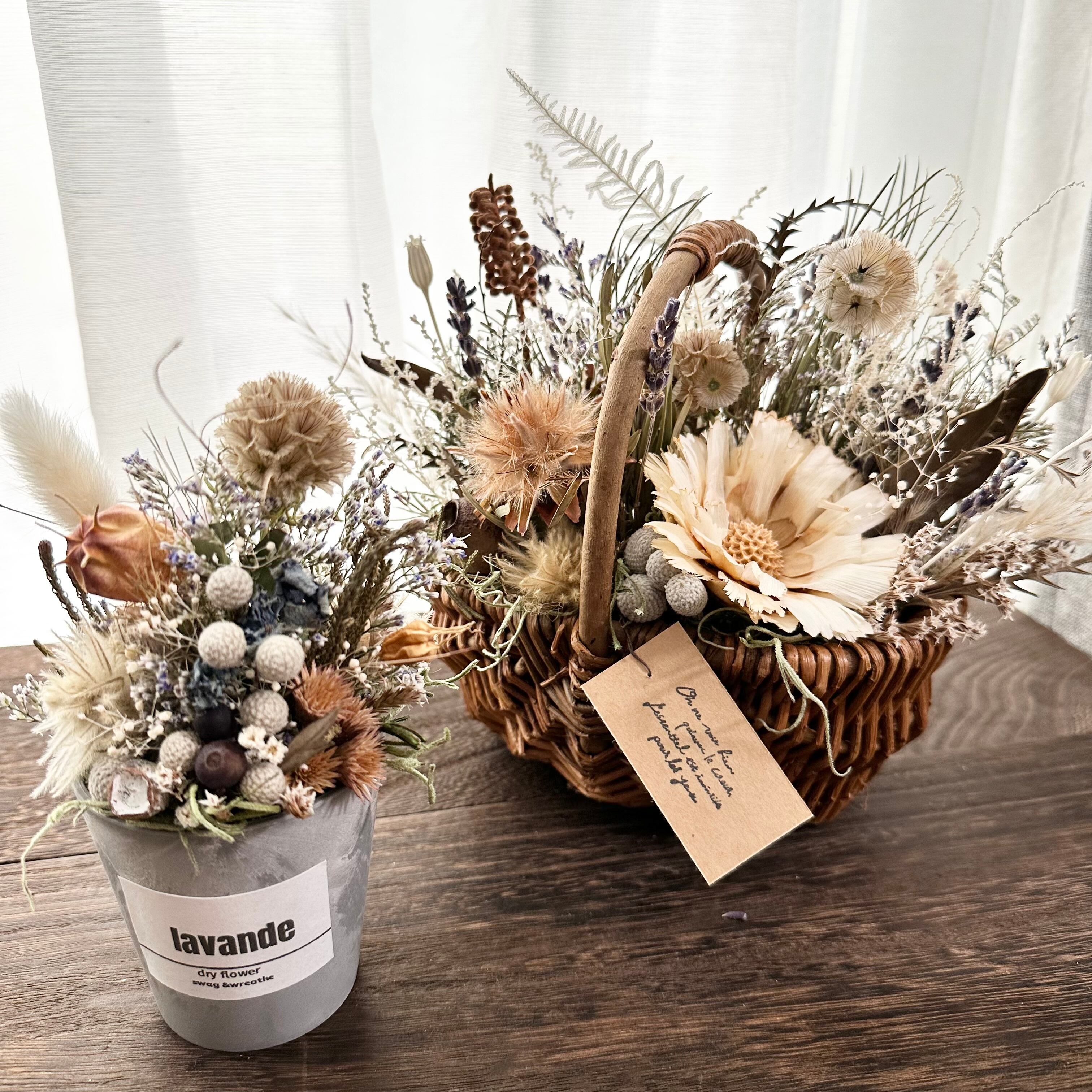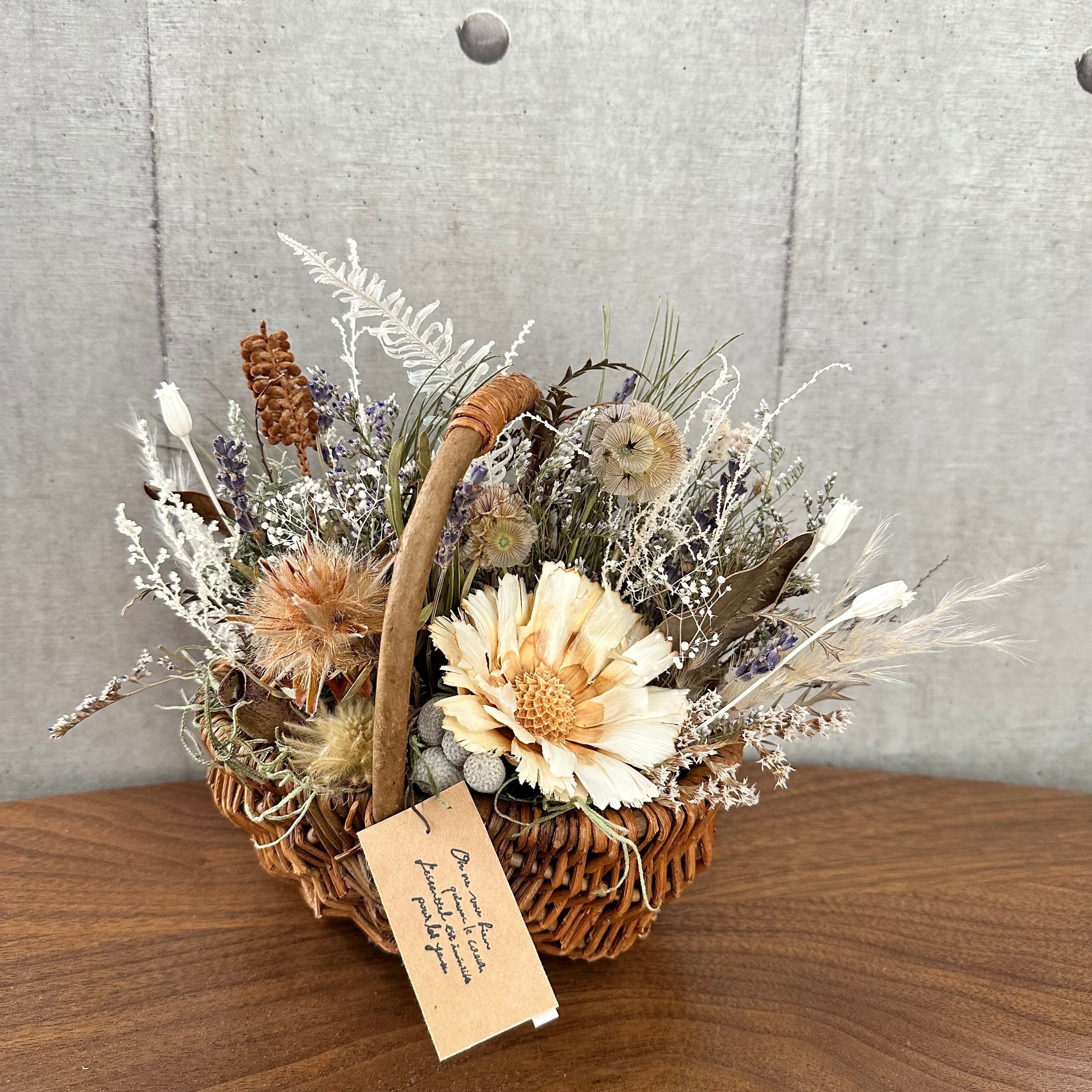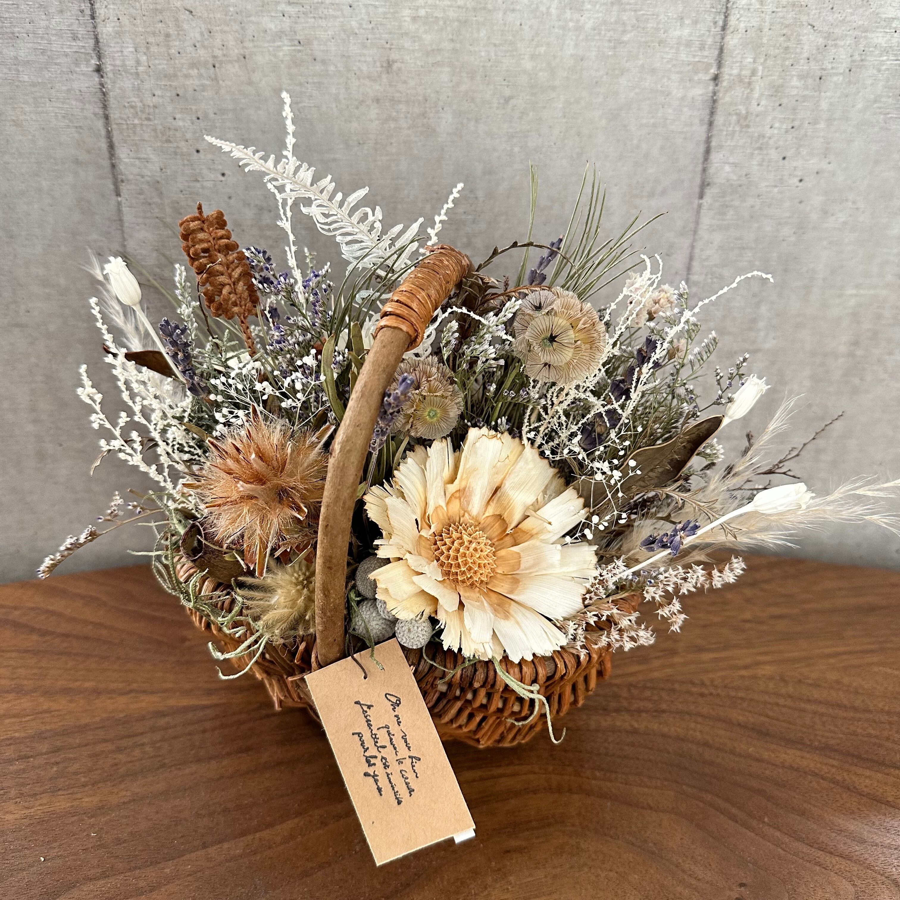 #ドライフラワー #フラワーバスケット #ホワイト系インテリア #大人かわいい #カゴ #フラワーアレンジ