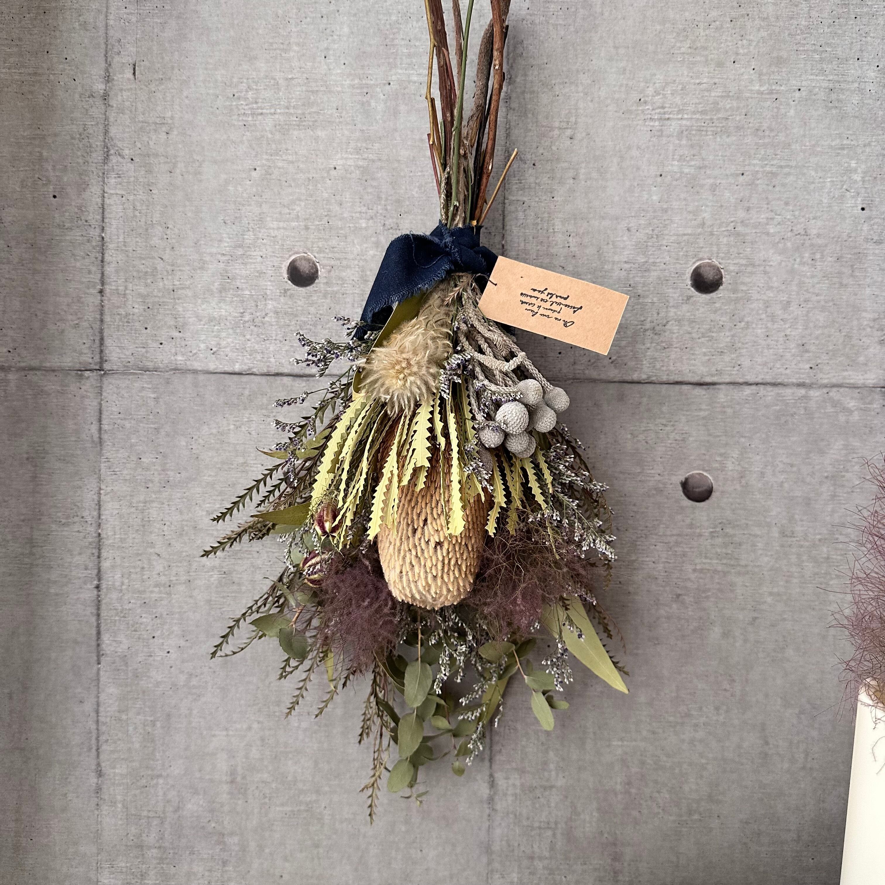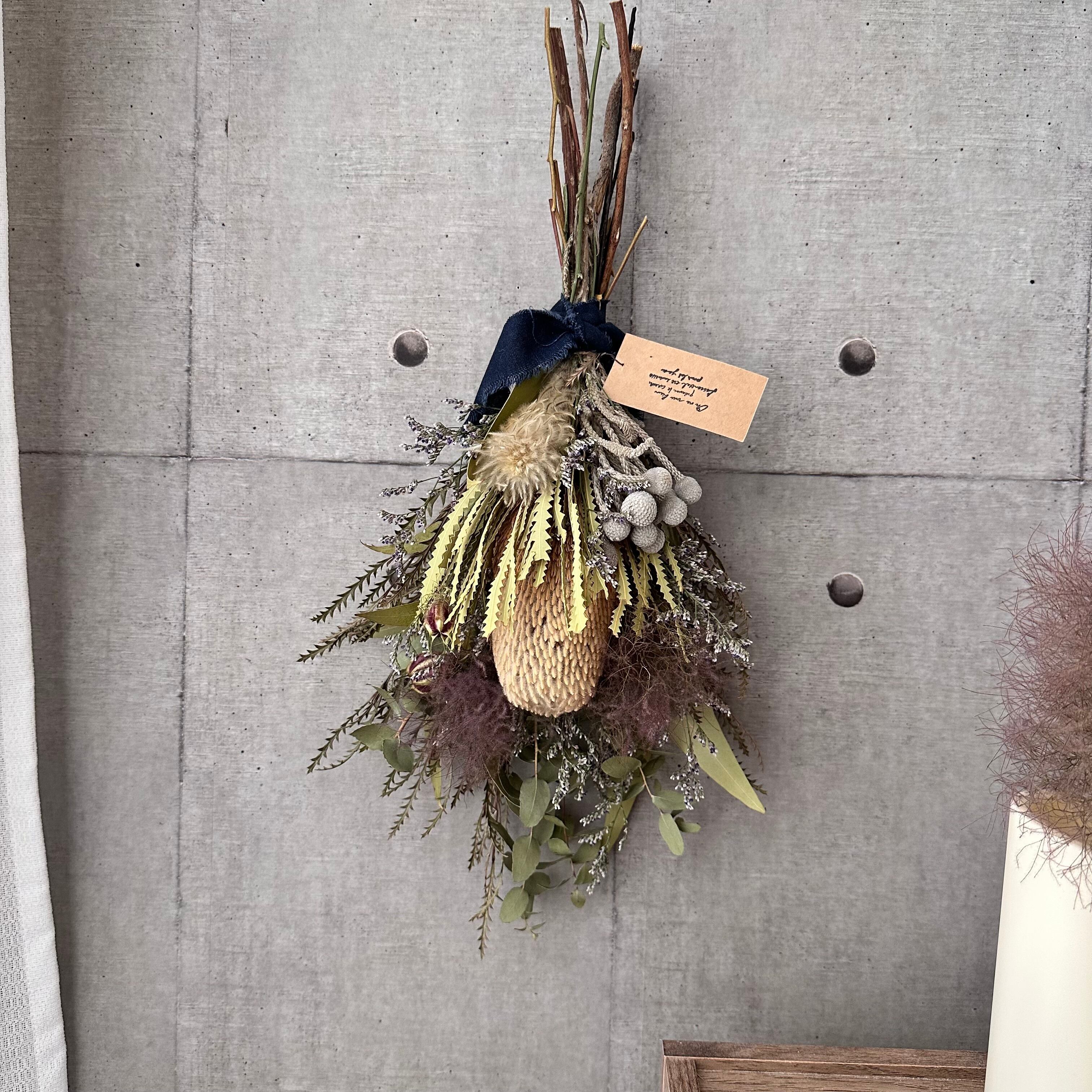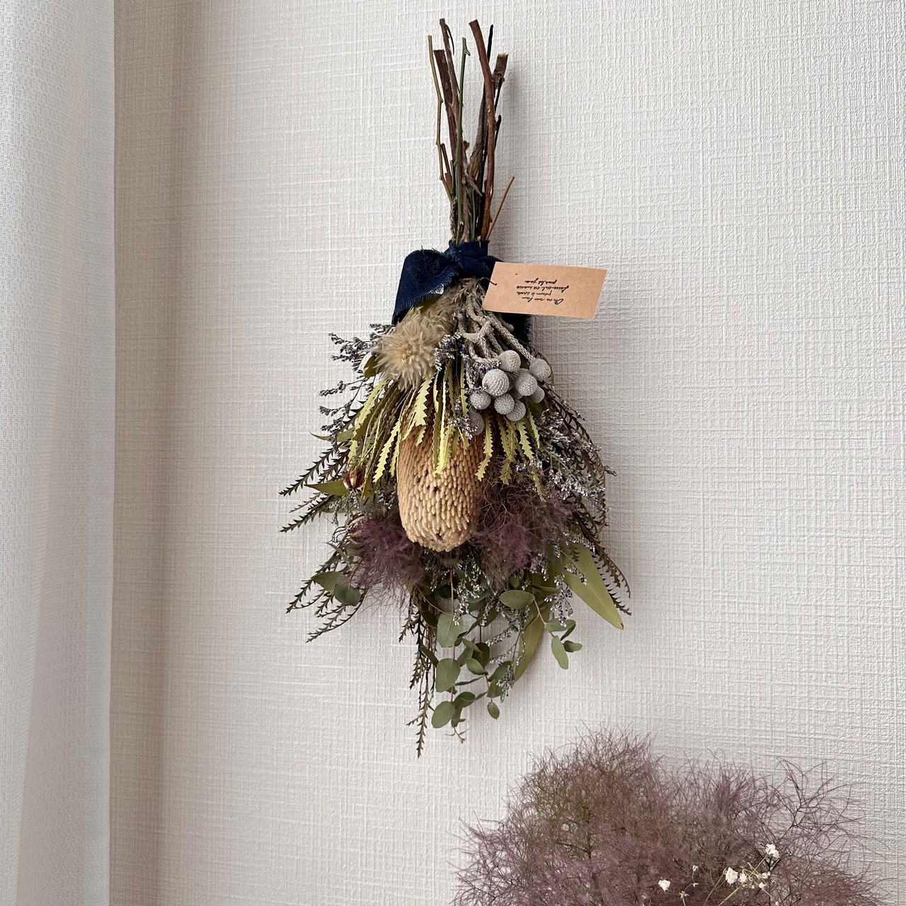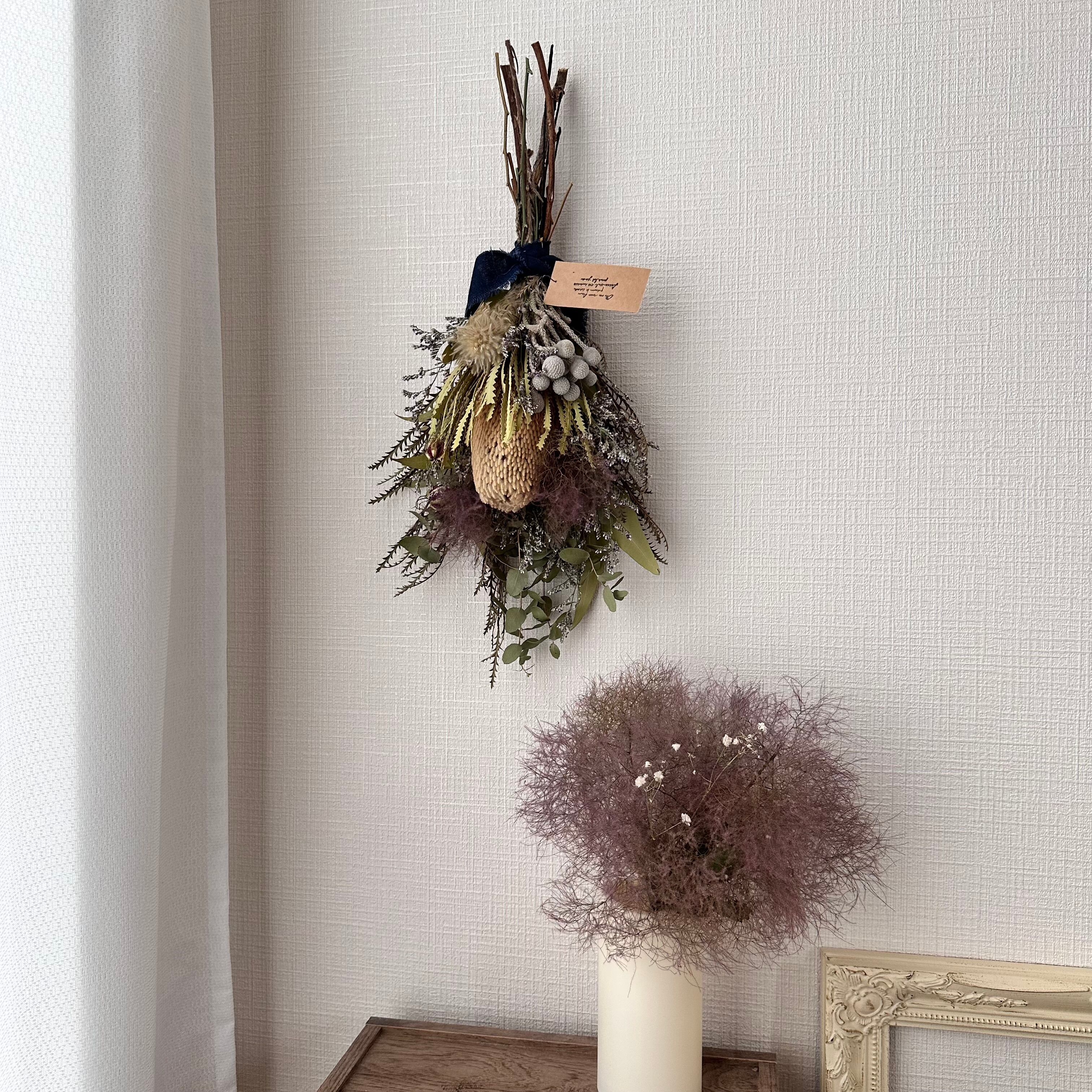 バンクシアメインのドライフラワースワッグ スモークツリー