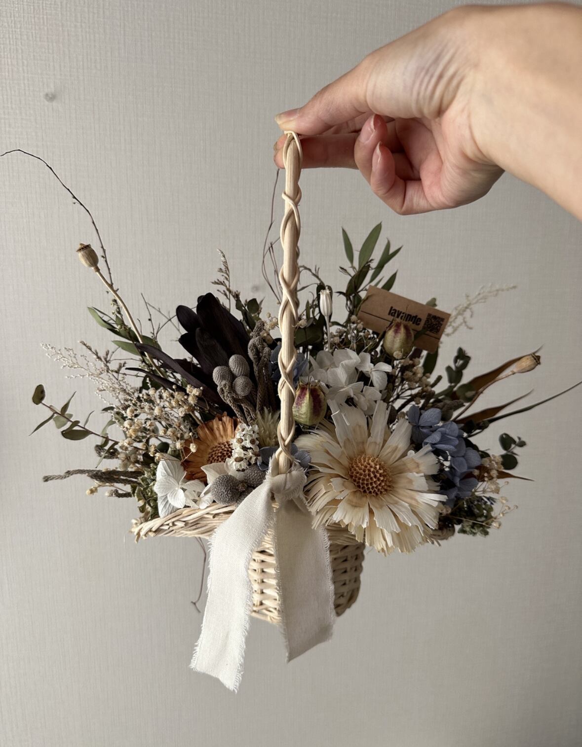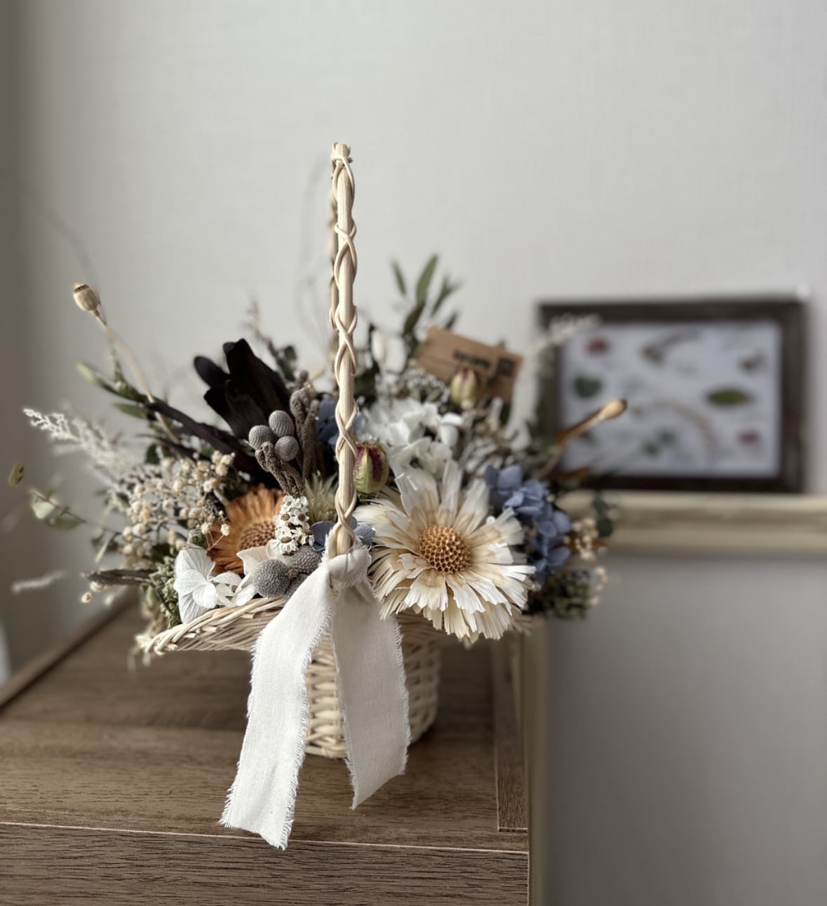 #ユーカリ #紫陽花 #ドライフラワー #バスケットアレンジ #お祝い #プレゼント #誕生日プレゼント #新築祝い #開店祝い #出産祝い