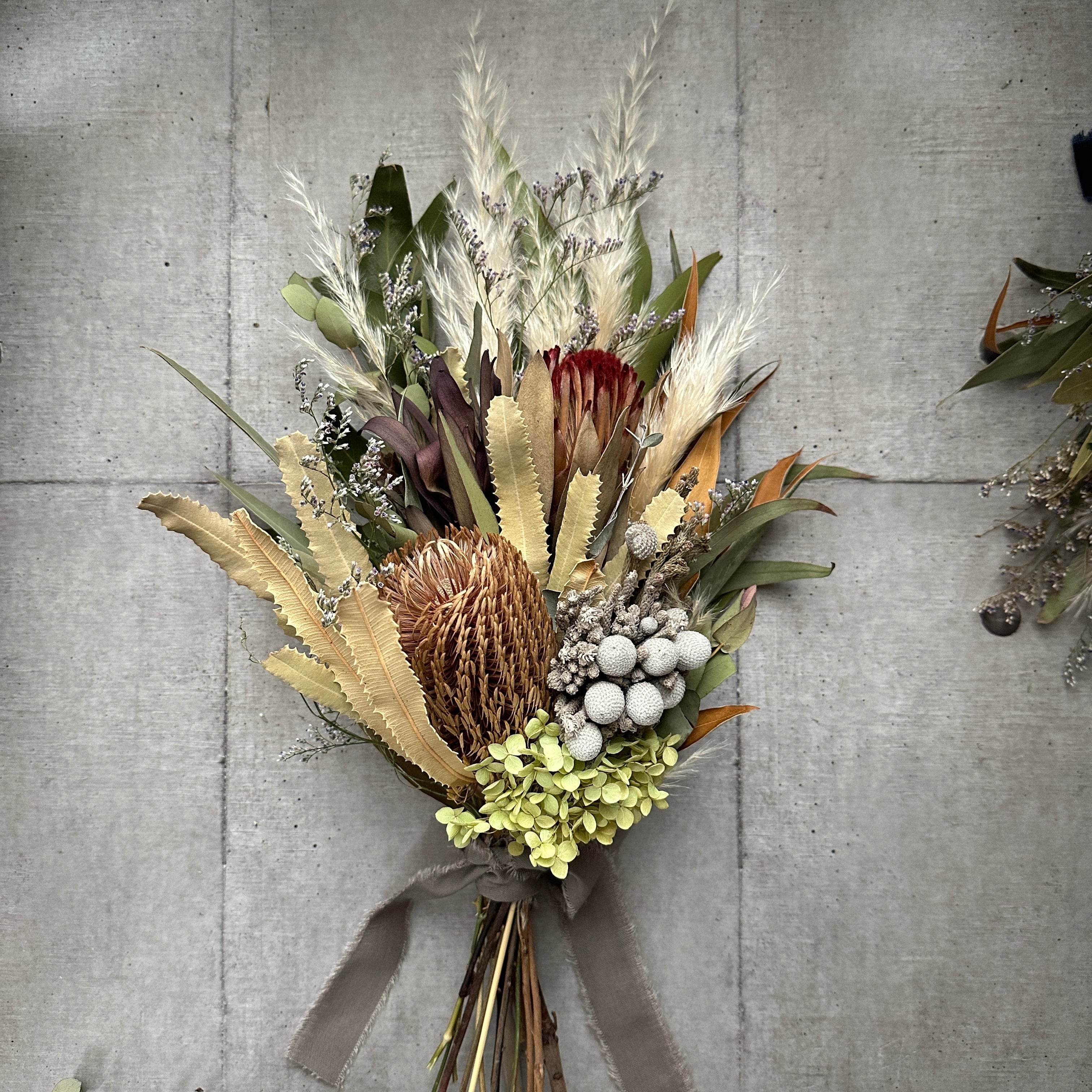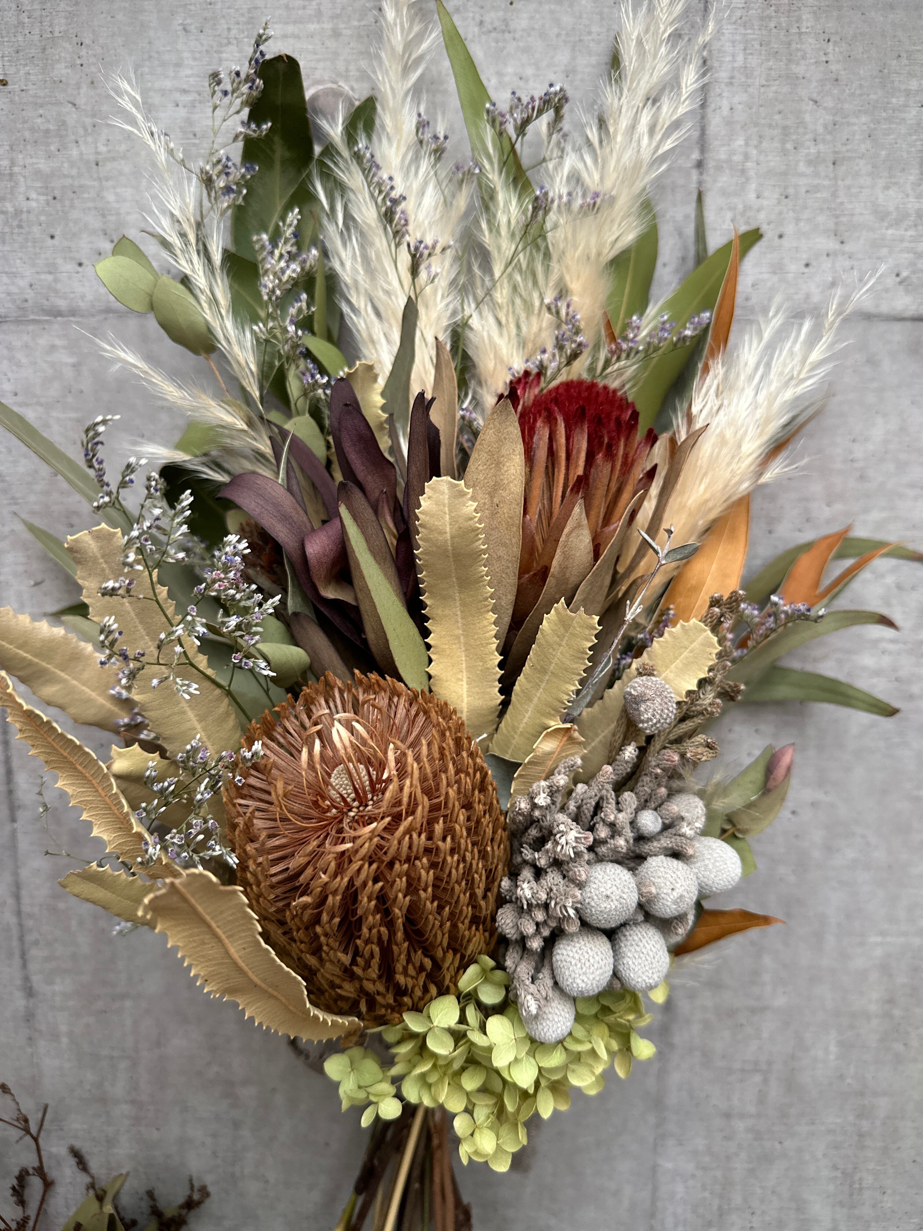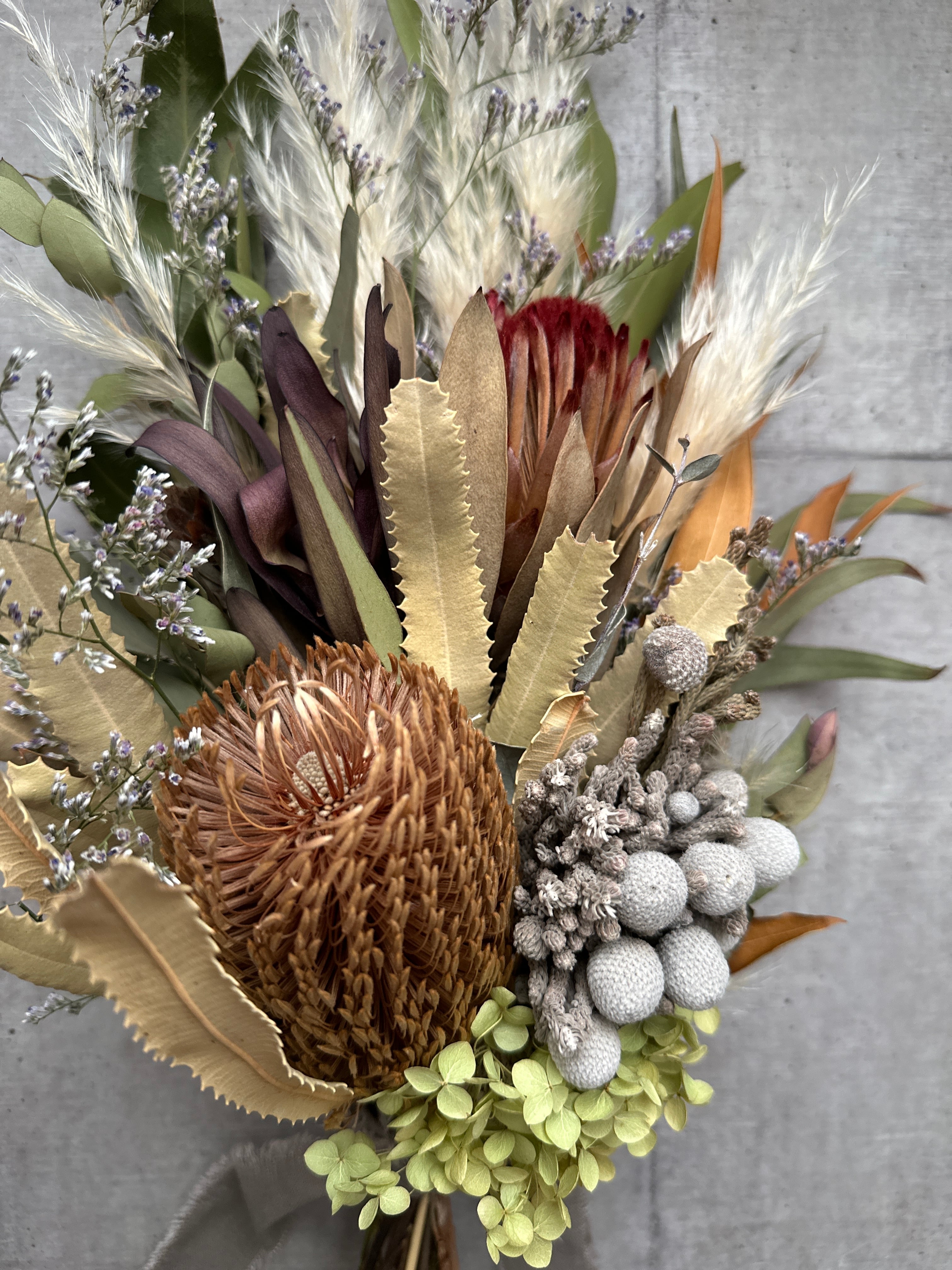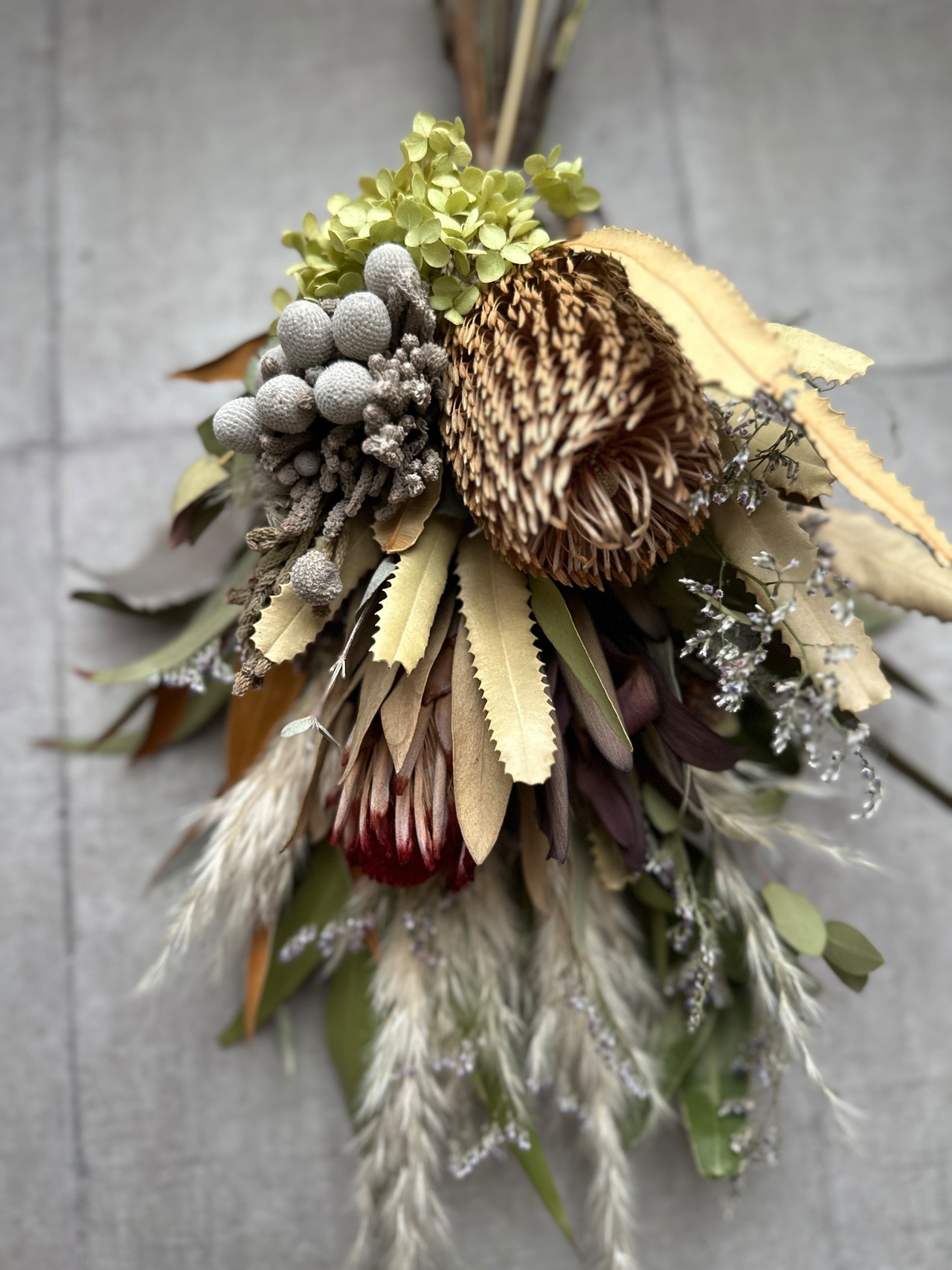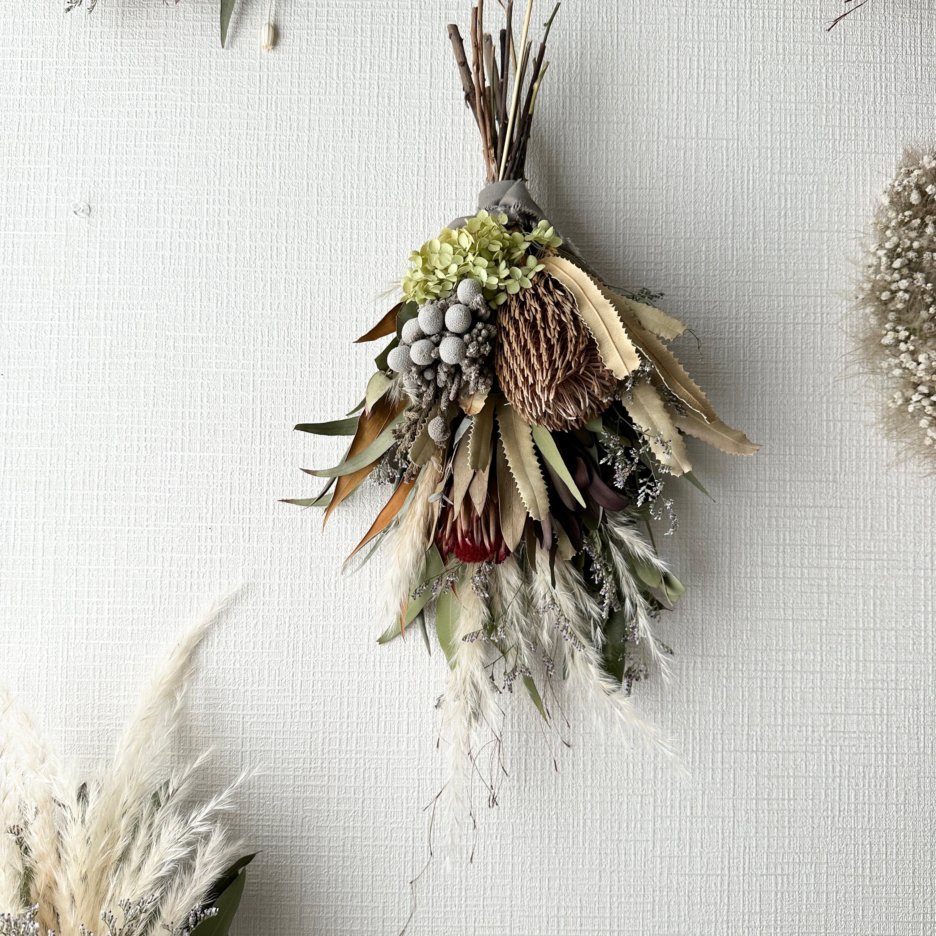 バンクシア、プロテアメインのドライフラワースワッグ アナベル 約50㎝